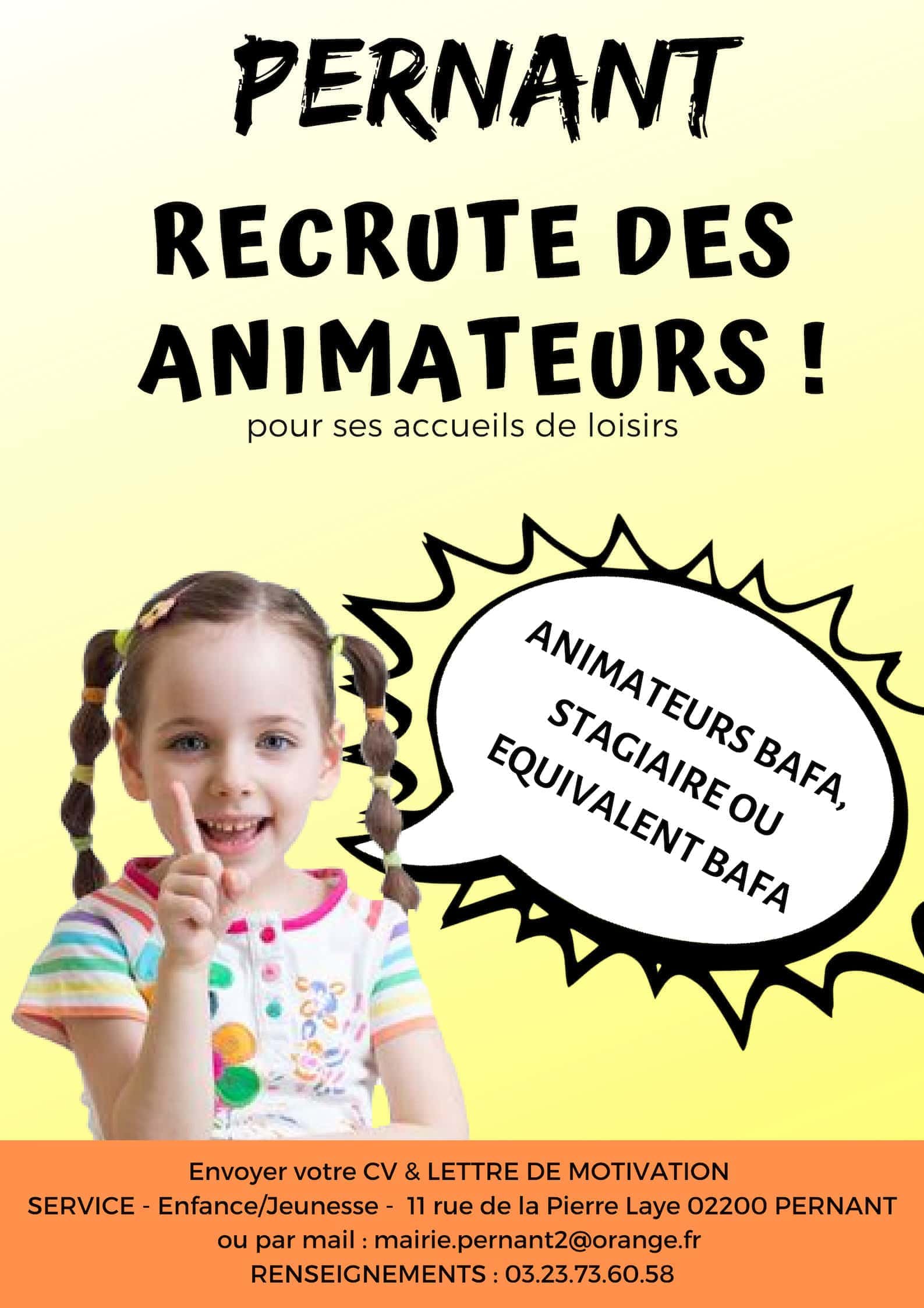 Pernant recrute des animateurs pour ses accueils de loisirs.